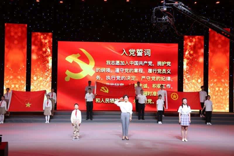 演员们都是来自各县区10个学校的少先队员和少先队辅导员。10个情景舞台剧、长达100分钟的展演,从不同角度展现中国共产党的百年奋斗历程。