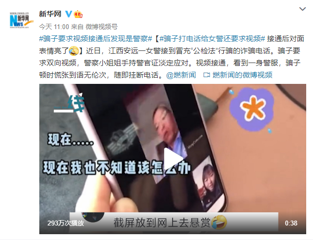 骗子打电话给女警还要求视频 接通后他的表情亮了