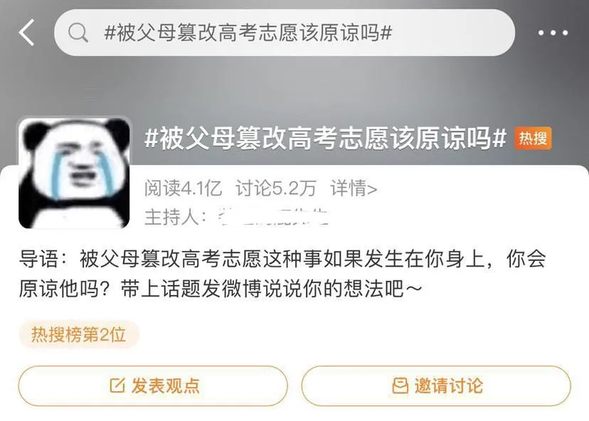 最近,“被父母篡改高考志愿该原谅吗”冲上了微博热搜,引发了不少网友的讨论。看来,这样的情况并不算罕见,否则,这个话题也不会得到那么多网友的关注。