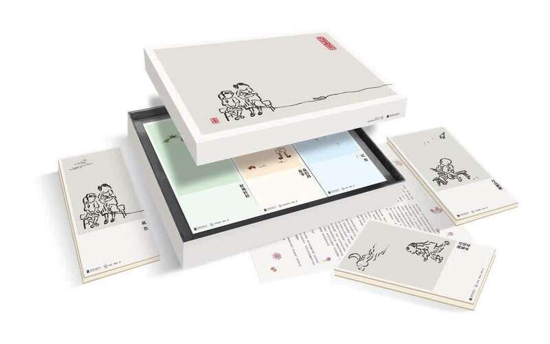此外,蔡皋还用中国传统的文人艺术经折装方式创作绘本。2020年12月,蔡皋的经折装绘本系列“记得当时年纪小”,被乐府文化推出面世。包括一册童年自述《底色》,两册童谣绘本《月亮粑粑》《月亮走,我也走》,三册无字书《记得》《好风轻轻》《我们的故事》。