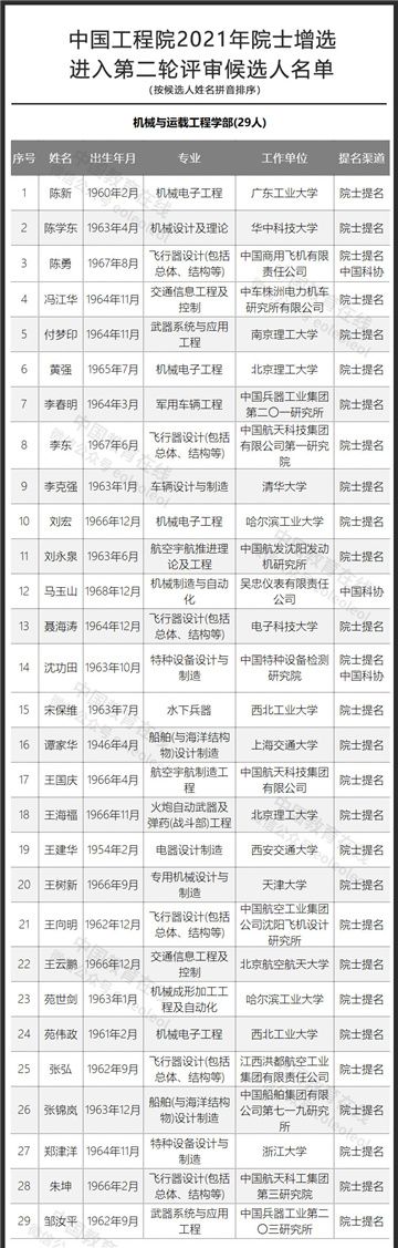 60后成主力军,中国工程院公布2021年院士增选进入第二轮评审候选人名单