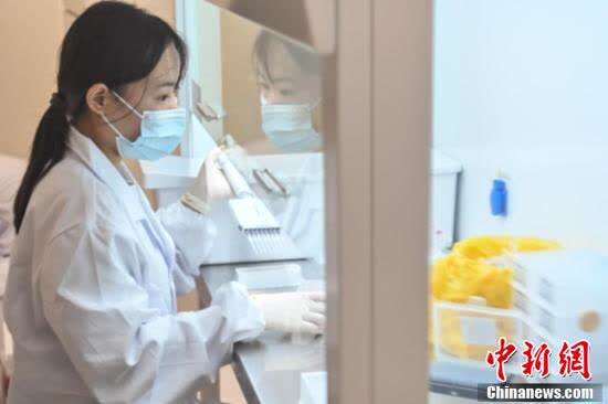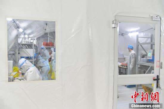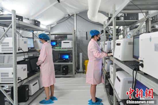 工作人员在“猎鹰号”气膜方舱实验室内工作。
