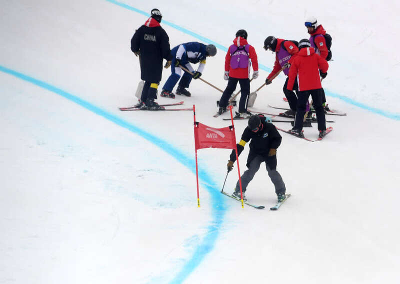 2月23日,延庆赛区国家高山滑雪中心的工作人员正在修整赛道。新华社记者 张晨霖 摄