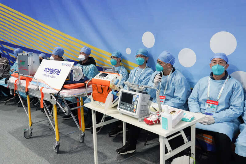 4月4日,医护人员在场馆内的FOP医疗站待命。新华社记者 彭子洋 摄