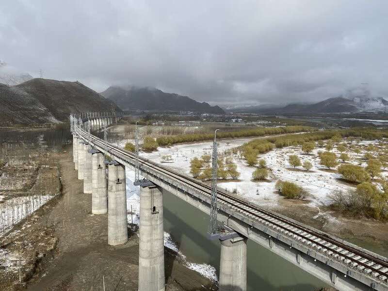 拉萨至林芝铁路全长435公里,桥隧比高达75%,全线47座隧道、120座桥梁,预计将于今年7月1日前通车。