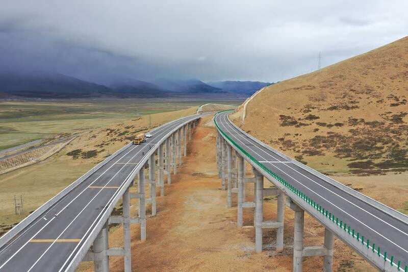 京藏高速那曲至羊八井段全长226.9公里,设计时速120公里,共设桥梁145座,其中特大桥7座,今年即将建成通车,那曲至拉萨将缩短至3小时左右。