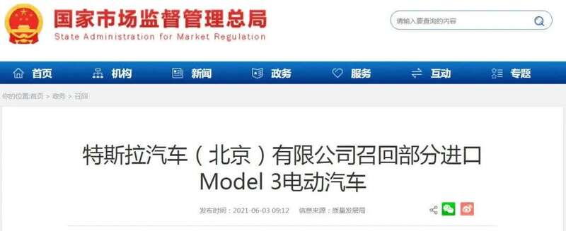 日前,特斯拉汽车(北京)有限公司根据《缺陷汽车产品召回管理条例》和《缺陷汽车产品召回管理条例实施办法》的要求,向国家市场监督管理总局备案了召回计划,决定自即日起召回以下车辆。