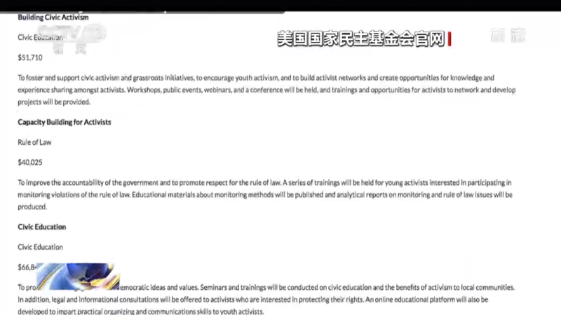 近年来,美国国家民主基金会在叙利亚、伊朗、俄罗斯等反政府活动上投入的资金越来越多。从美国国家民主基金会官网,可以看到给这些国家的反政府组织、所谓的独立记者组织等机构每年都有多个资助项目。
