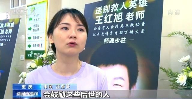 大渡口区育才小学 学生:我觉得(王老师)他是一个英雄,他舍己救人,用自己的生命换回来两个稚嫩的生命,所以我来送别他。