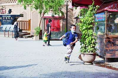 喀什古城中放学的孩子。本报记者 李曾骙摄/光明图片