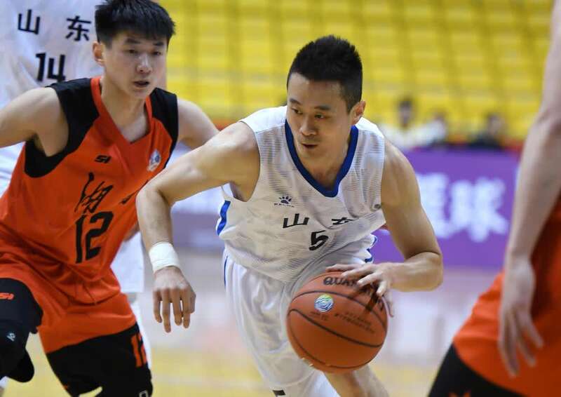 5月11日,山东队球员许家晗(中)在比赛中持球进攻。新华社记者李紫恒摄