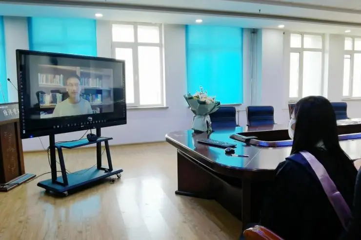让李敏颇感意外的是,学院还为她自己准备了一场难忘的毕业典礼,院长耿玉德为她拨穗。“今后,无论你在哪里遇到困难,学校始终是你的家。”耿院长暖心地说。李敏的班级同学们也在线上送来毕业祝福。“身边的老师和同学们总能在我需要帮助时带给我前进的力量与勇气,对待未来我充满信心。”看到学院和同学所做的一切,李敏备受感动。