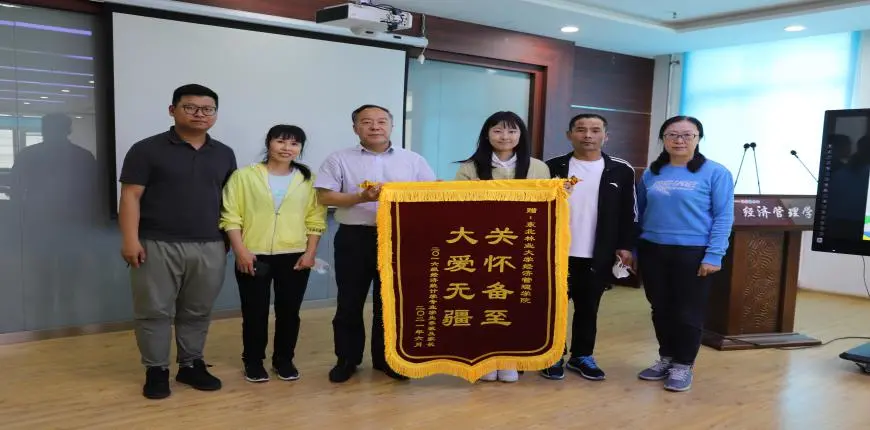 李敏将两封手写的感谢信交给经济管理学院院长耿玉德和辅导员王海飙。“感谢学校、老师们,为我们开设绿色通道,辅导员多次联系我们询问实际困难,从前期的结业事宜、行李邮寄、保险报销到毕业答辩、二次报销等方方面面提供帮助,我们无以为报,和孩子爸爸想把这面锦旗送给学校,来表达我们全家的感谢。”李敏母亲激动地说。