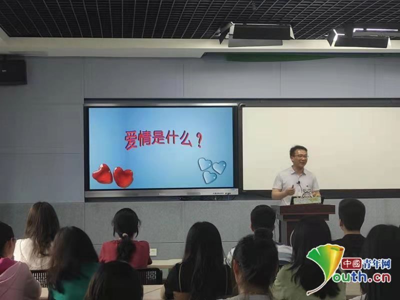 “爱情是什么?在座有谈恋爱的同学举个手给大家看看,不要羞于分享你们的恋爱。谈恋爱是一件很光荣的事情!”在课堂的开始,该校经济学院党委副书记何仁辉便与同学们互动起来,提出一个平时老师长辈们都避开的话题。同学们第一次在课堂上碰到这样的问题,有点新奇又有点不好意思,面面相觑引起一阵哄笑,课堂也在这个问题的带动下活跃起来……