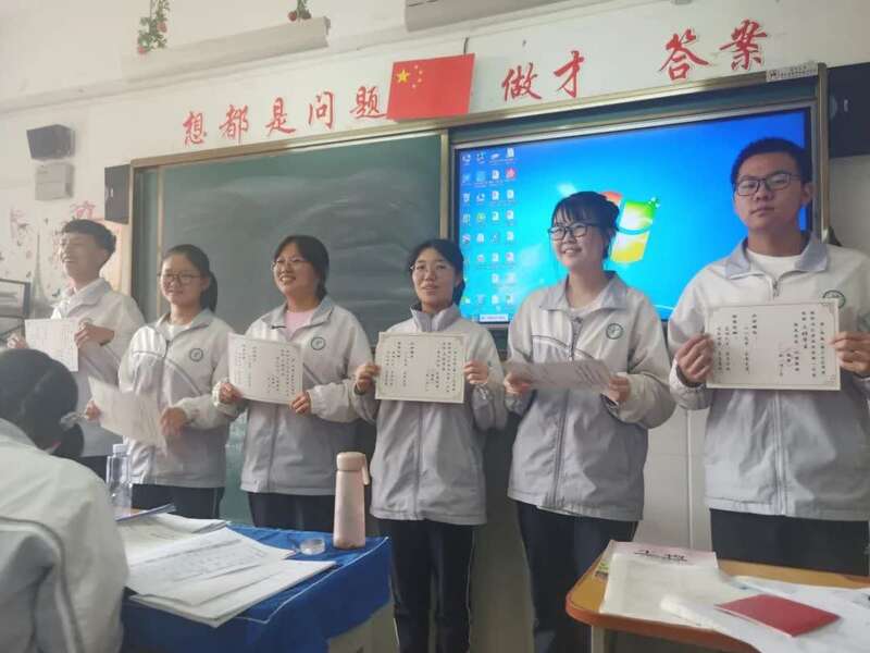 一张高考前同学们一起玩游戏的照片。那时距离高考还有48天,大家一起穿上班服,一起聚精会神的听题目,一起坐在自己的小座位上默默奋斗。面临着高考延迟,我们更要捉紧时间向前冲刺,考取理想成绩。以梦为马,不负韶华!不要害怕,往前冲冲冲!