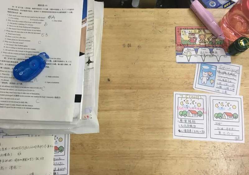 我是一名大一艺术生,去年疫情肆虐,太多的节奏被打乱,我也不例外。我们经历了授课方式从上网课转到线下,高考日期从六月推迟到七月。可以说去年今日,我的心情就像天气一样炎热烦闷。高考在即,那天大家突然心血来潮,擦去了白板上密密麻麻的数学公式、英语单词、诗词名句……抢着拿笔在上面画上每个人的卡通图像,画完后互相指着哈哈大笑。那一刻,我的焦躁情绪似乎一下子消散了。