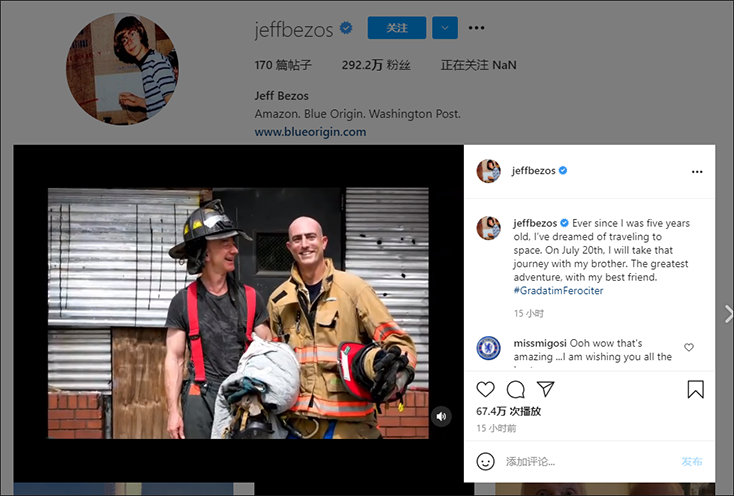 杰夫·贝索斯Instagram账号截图