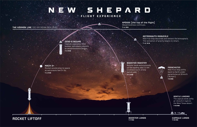 “新谢泼德”号火箭(New Shepard)太空任务介绍图,来自“蓝色起源”官网。