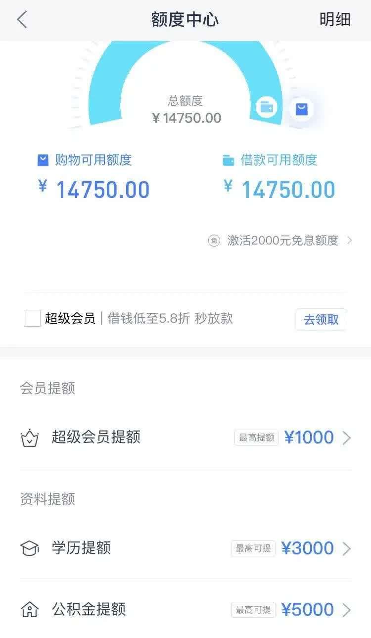 分期乐的初始额度之高让程莉吃惊,新用户完善各种资料后能直接借到大几千元,而且分期乐的额度可以直接提取到用户的银行卡,用于其他消费平台和渠道。程莉最初抱着“只用几千”的想法借了2000元的分期乐贷款,她给自己定下“最多5000”的限制,而借到了5000元以后她又将这个限制改到了6000元,后来这个上限不断被打破。