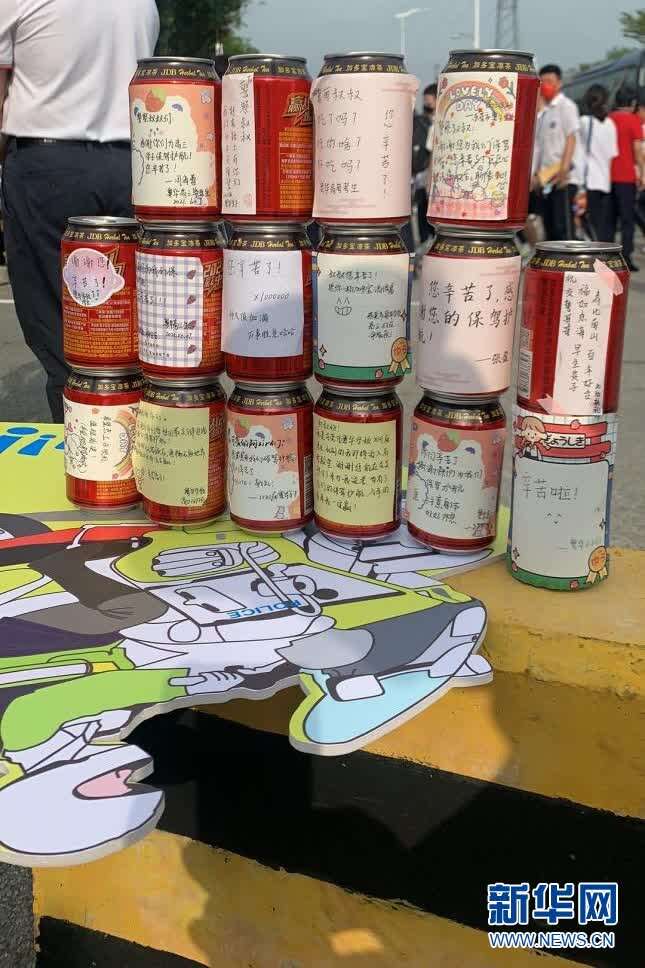 公安全力护航,考生暖心回馈。在东莞外国语学校考点,考生为护航高考的执勤人员送上了凉茶,并用便签纸写上谢语,以此感谢他们的辛勤付出。