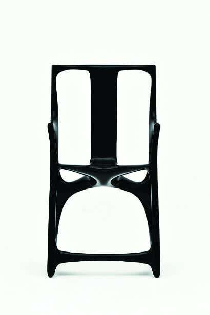 致力于研究异化有机体构筑物的周磊杰,在设计“异化的南官帽椅”“异化的酋长椅”时,通过数据采集、计算机模拟、G代码编写、CNC加工等数字技术,使得传统经典的设计演化出“不可知”的新形态。