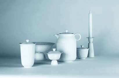 不只是让传统与现代碰撞,这些年轻设计师还解锁了更多“混搭”方式。为了将餐具器皿做得尽量薄,吴孝儒启用了传统的薄胎瓷和中国宋代的脱胎瓷两种相当精细的工艺。再看他设计的餐具表面的装饰纹路,人们又会咋舌——这种充满亲切感的罗纹状表面纹理的脱胎于路边摊的一次性塑料餐具。