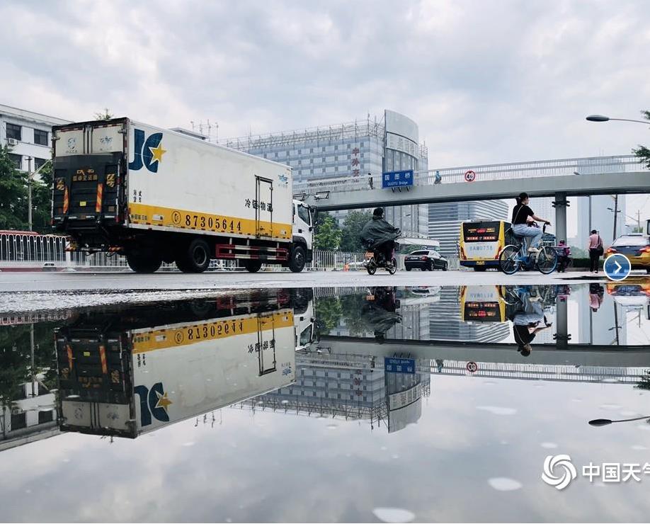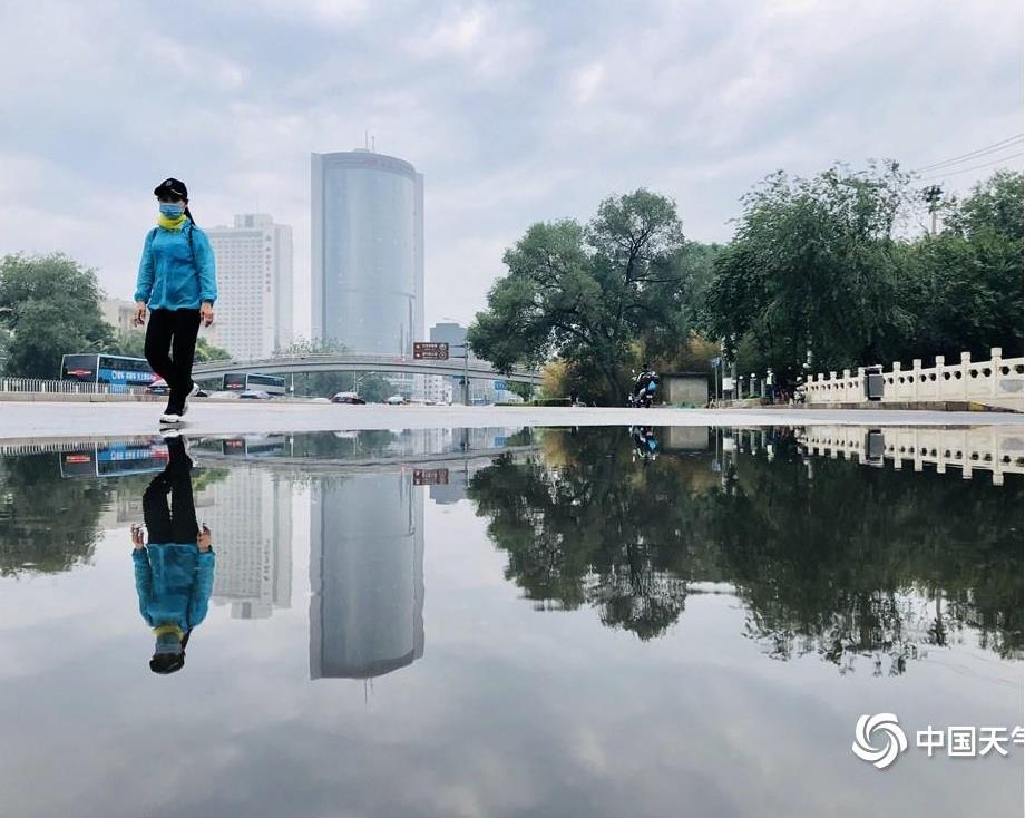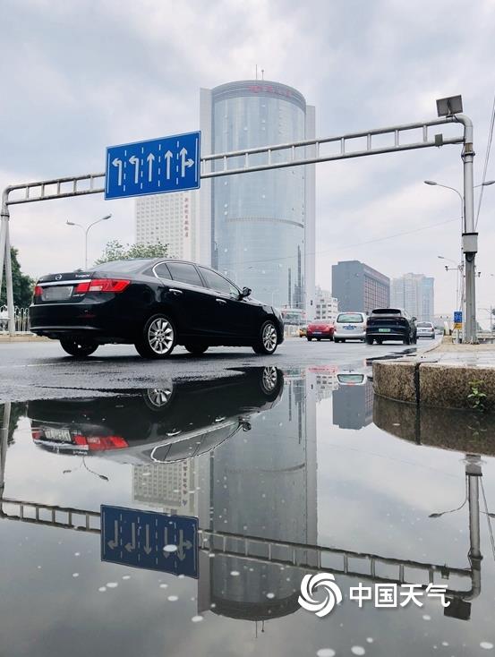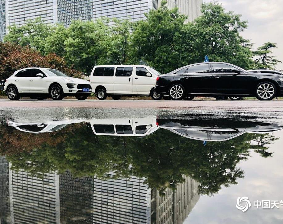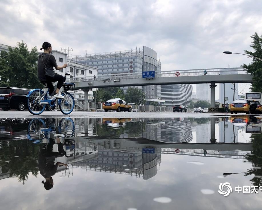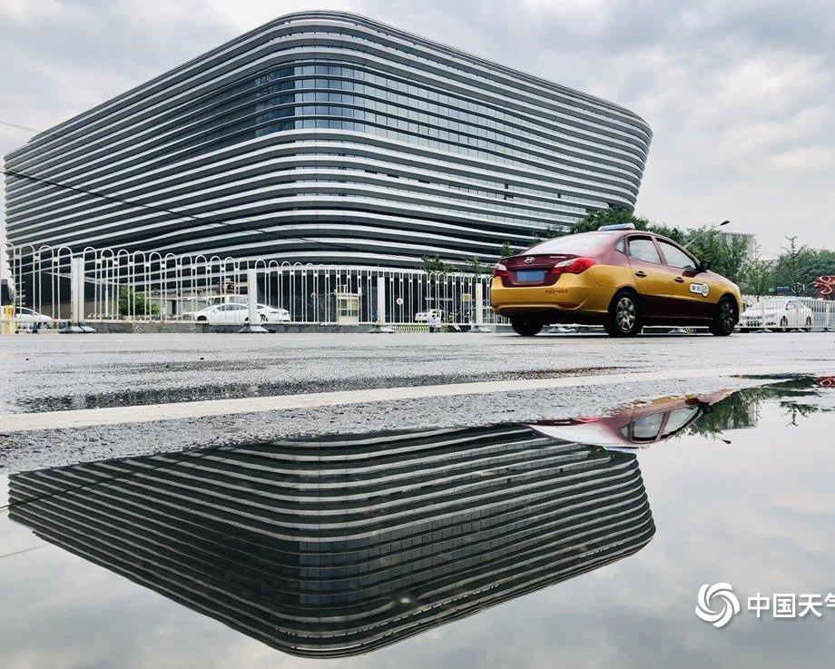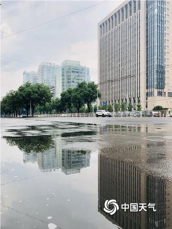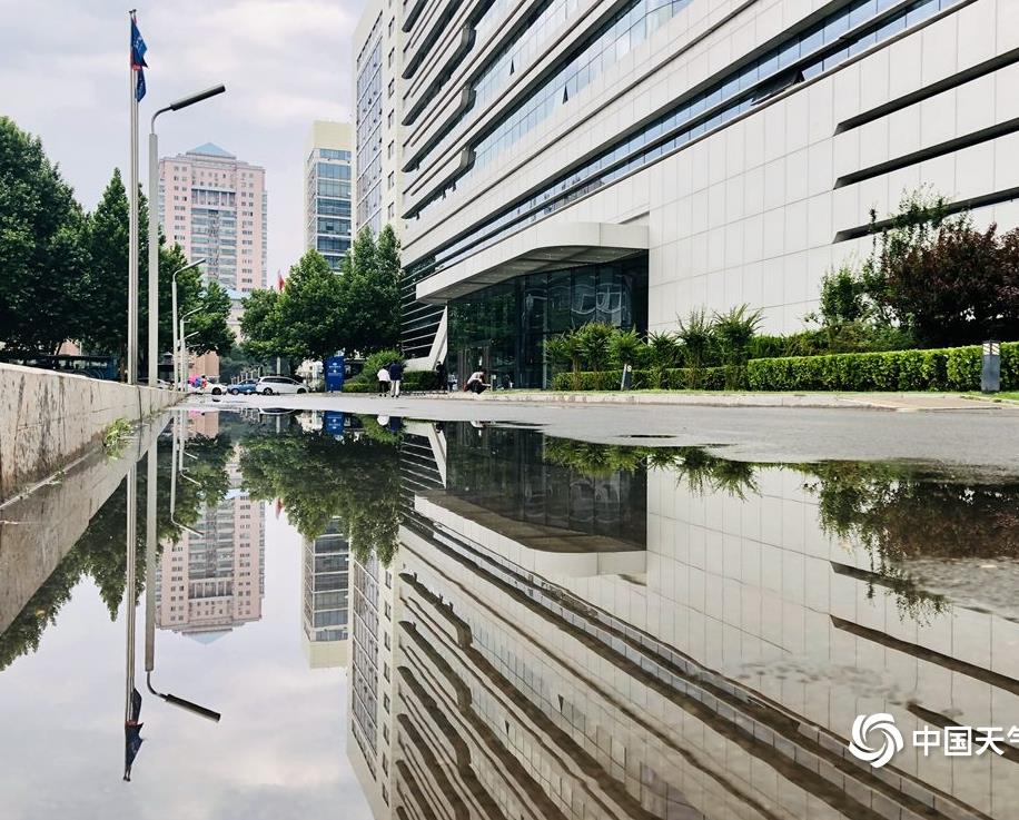 6月9日,北京雷雨过后,城市街景与倒影构成了一幅幅独特的画面。(图/中国天气网 王晓)