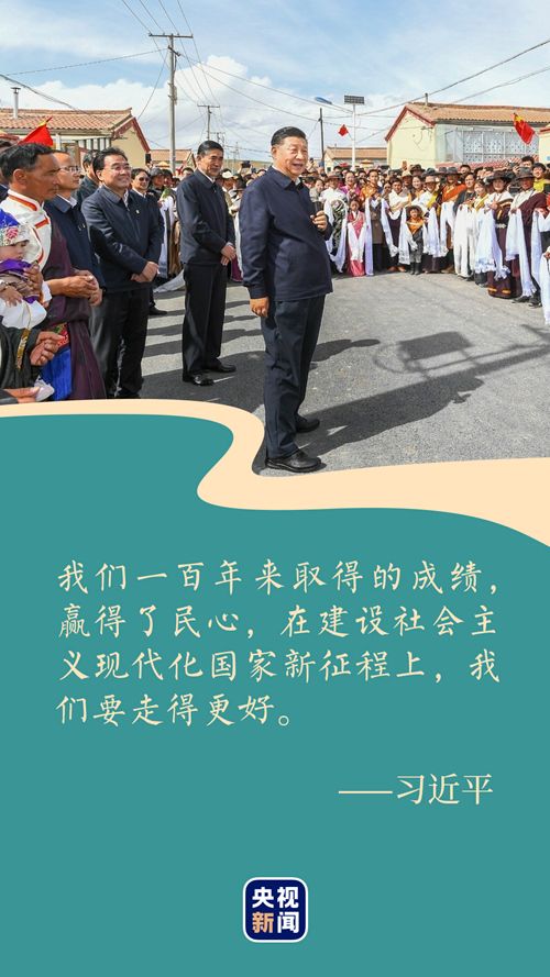 总书记走进牧民索南才让家中,看望慰问藏族群众。索南才让说,牧民生活好,全靠党的政策好,衷心感谢党、衷心感谢总书记。习近平深情地说,我们党成立一百年了,为什么老百姓衷心拥护中国共产党?因为我们党始终全心全意为人民服务、为各民族谋幸福。