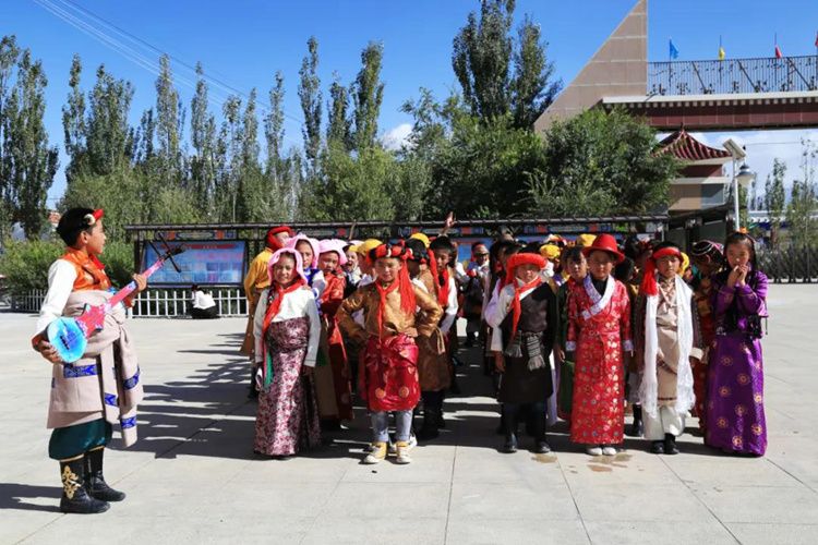 8日,青海省刚察县沙柳河镇果洛藏贡麻村口,村民们身着盛装,献上洁白的哈达,表达对习近平总书记最隆重最热烈的欢迎。