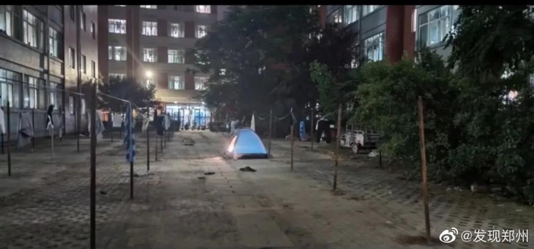 有学生因天气炎热,寝室没有安装空调无法入睡,夜晚就在校园里搭帐篷睡觉。
