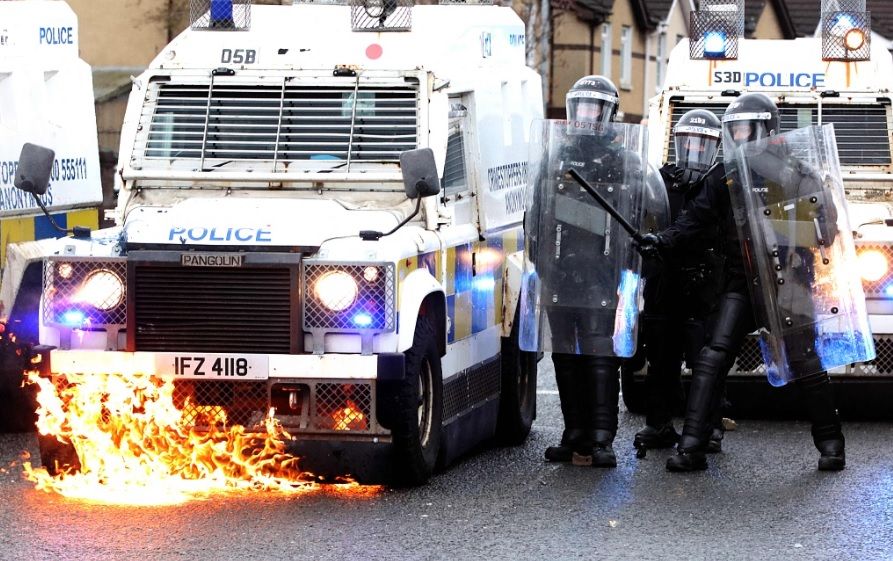 当地时间2021年4月8日,英国北爱尔兰首府贝尔法斯特,北爱尔兰地区的骚乱仍在持续,一名记者说,北爱尔兰警方遭遇了汽油弹和石块的猛烈攻击。