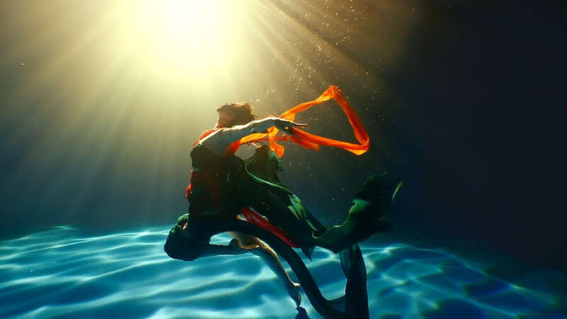 《端午奇妙游》的水下舞蹈节目《祈》便完美再现了这一场景。舞蹈演员在水下起舞,状若飞天:水随舞动,衣袂翩跹;拂袖起舞,拨裙回转;水乳融合,缠绵缱绻……据介绍,舞蹈《祈》是为了表现端午拴五色丝线祈福的习俗。