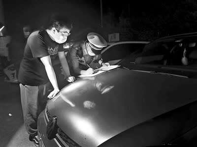 车旁几人看到民警来了,开始踱步,佯装路人。但几个年轻人还是经不住民警问话,承认了自己就是车主的事实。