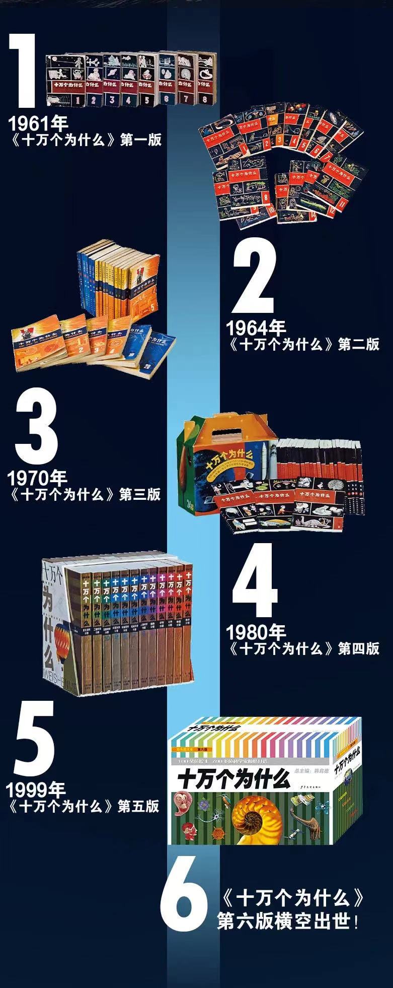 第一版《十万个为什么》出版于1961年,至今已连续出版至第六版,是影响数代新中国少年儿童成长的经典科普读物。60载出版历程中,《十万个为什么》屡获大奖,包括我国新闻出版领域最高奖项“中国出版政府奖”,科学技术领域的“国家科技进步二等奖”“上海市科技进步一等奖”等。