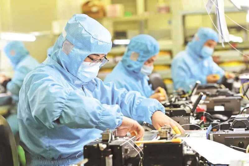 武汉锐科光纤激光技术股份有限公司脉冲光学车间,员工正在加紧生产光纤激光器光学模块。(湖北日报全媒记者 李溪 摄)