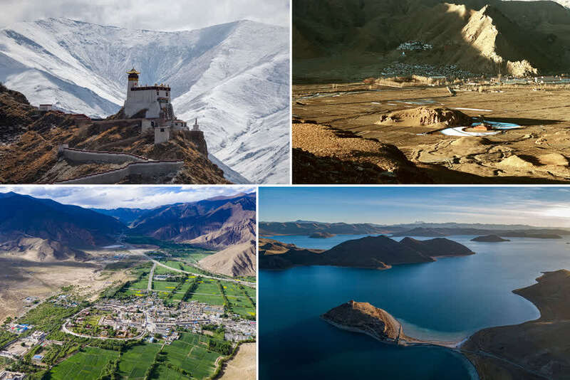 拼版照片:左上:位于山南市乃东区的西藏第一座宫殿——雍布拉康。新华社记者 普布扎西 摄