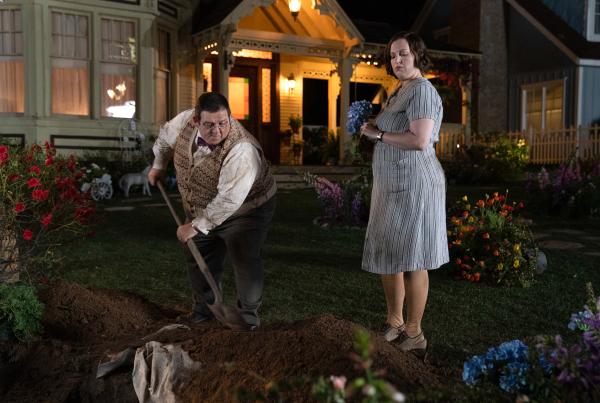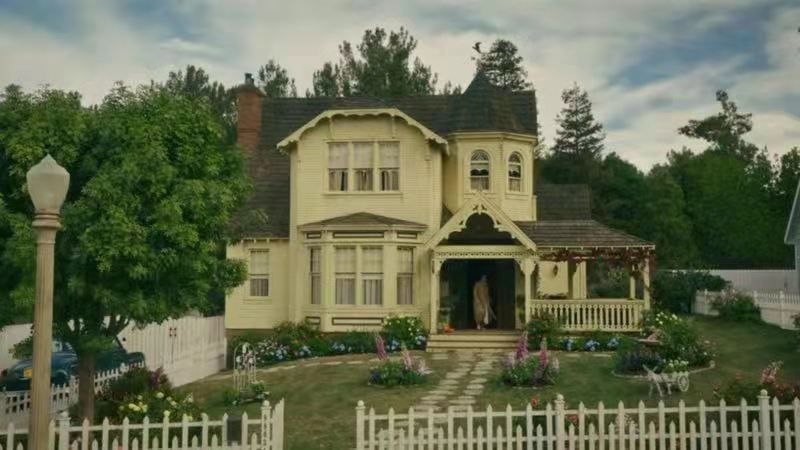 艾尔玛(艾莉森·托尔曼饰)在洛杉矶市郊的乳黄色独栋别墅有门廊和多边形凸窗,白色矮篱笆围住前院的草坪花园。花园里只有一棵树。春夏之交,大花飞燕草和蓝色绣球是花池的主角,橙、黄、粉、红色的月季正是一年好时光。