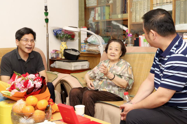 校领导们来到孙霆、王爱伦、江大华、钱大同等老党员家中,为他们颁发“光荣在党50年”纪念章,送上鲜花和慰问品,同他们促膝交谈,详细询问和了解他们的家庭生活和健康状况,聆听老党员们讲述年轻时参加地下工作、克服困难坚持求学、参与杭州市首批援藏、投身杭州师范学校建设等奋斗故事。