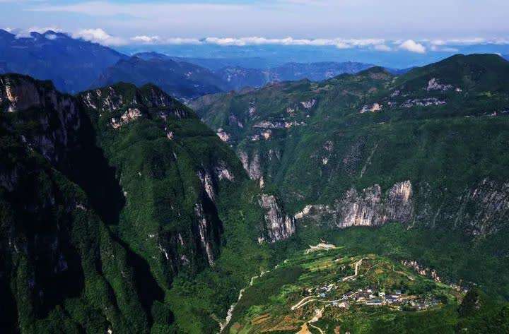 老下庄村坐落在巫山县竹贤乡的大山深处,四周高山绝壁合围、生存环境恶劣、生活条件艰苦,是名副其实的“天坑村”,从“井口”到“井底”,垂直高度1100多米,外出只有一条在绝壁上的羊肠小道,到县城要走3天。