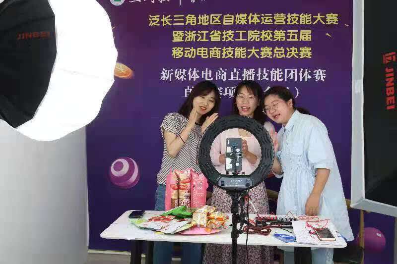 中国青年报客户端讯(中青报·中青网记者 李剑平)“欢迎各位‘宝宝’来到我们的直播间,天气热了要喝水,今天主播给大家带来一款水杯,先送一轮福利……”直播间里,浙江省机电技师学院的林琴雅和团队队员朱俞珊、楼美丽面对直播镜头,通力合作展示她们的直播才华。