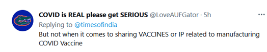 “但涉及到分享疫苗或与制造新冠疫苗有关的知识产权时,就不一样了。”