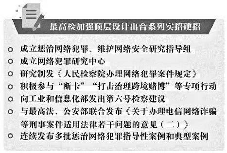 网络不是法外之地,网络空间延伸到哪里,法治就应覆盖到哪里。面对日益严峻的网络犯罪形势,最高检积极参与网络综合治理,不断加强顶层设计,出台了一系列实招硬招:
