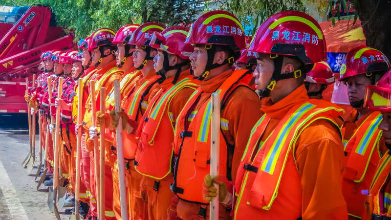 6月24日,黑龙江省大兴安岭地区消防救援支队准备执行沙袋填装固堤任务。(照片来源:黑龙江省消防救援总队)