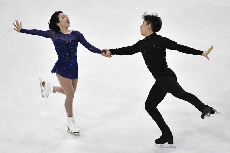 隋文静(左)/韩聪在双人滑自由滑比赛中。新华社/路透