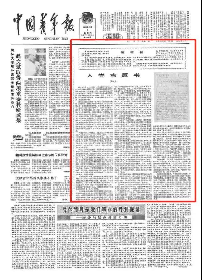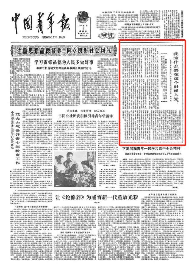 1980年3月6日出版的《中国青年报》刊发《我为什么要在这个时候入党》。
