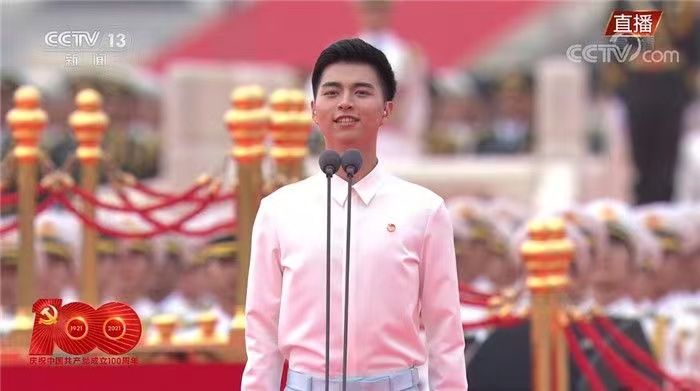 领诵员之一是咱们校媒人!共青团员和少先队员在庆祝中国共产党成立100周年大会上献词