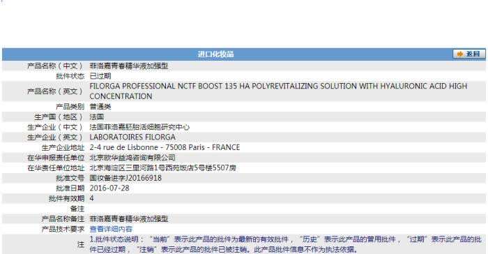 据多家媒体报道,其中一款十分火爆的进口水光针品牌——菲洛嘉135HA水光针,其产品批号仅为妆字号,且据国家药监局官网显示,其批文已经过期。
