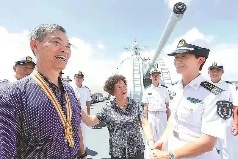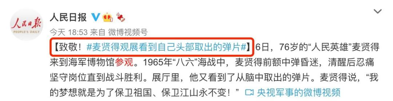 在参观中,记者发现麦贤得始终牵着海军战友的手。 面对镜头,他口齿略显不清,但誓言 依旧铿锵有力: