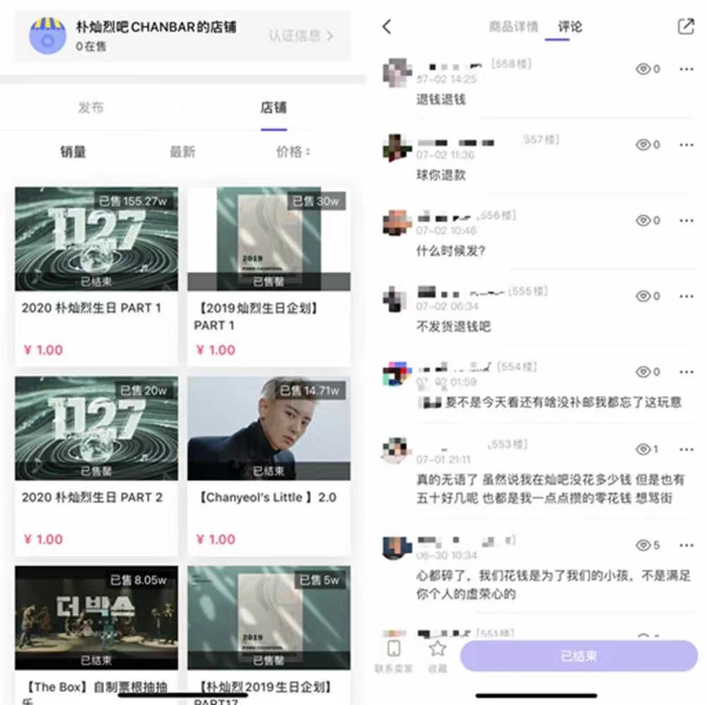 记者了解到,长期以来,很多粉丝都通过“朴灿烈吧”来购买偶像专辑和周边产品。但近期,该后援会一直未发货,甚至有几年前买的东西也没发货。据粉丝初步统计,商品金额高达上千万元。