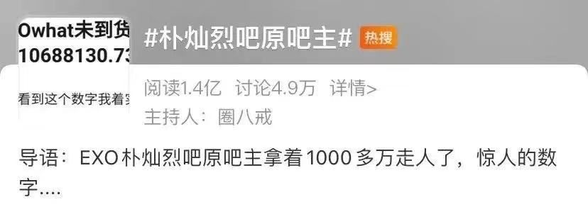 粉丝经济是门好生意,但也容易成为一笔糊涂账。近日,“朴灿烈原吧主”登上热搜,有网友爆料,韩国组合EXO成员朴灿烈的中国后援会“朴灿烈吧”的原吧主卷了上千万跑路。